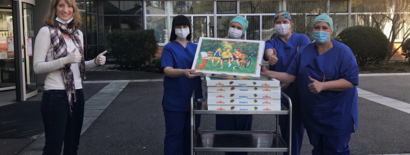 Pizzalieferung an die Mitarbeiter der Intensivstation der Klinik Löwenstein von der CDU-Landtagsabgeordneten Isabell Huber